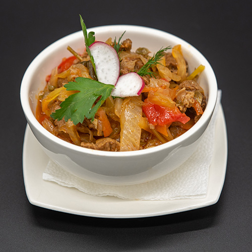 У нас вы можете попробовать блюда восточной кухни, такие как: шурпа с нежнейшей бараниной, лагман с говядиной и лапшой приготовленной вручную, плов по авторскому рецепту шефа и многое другое.